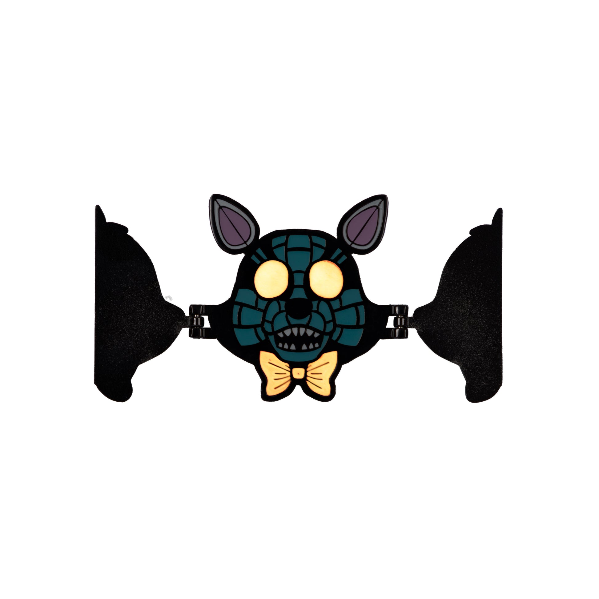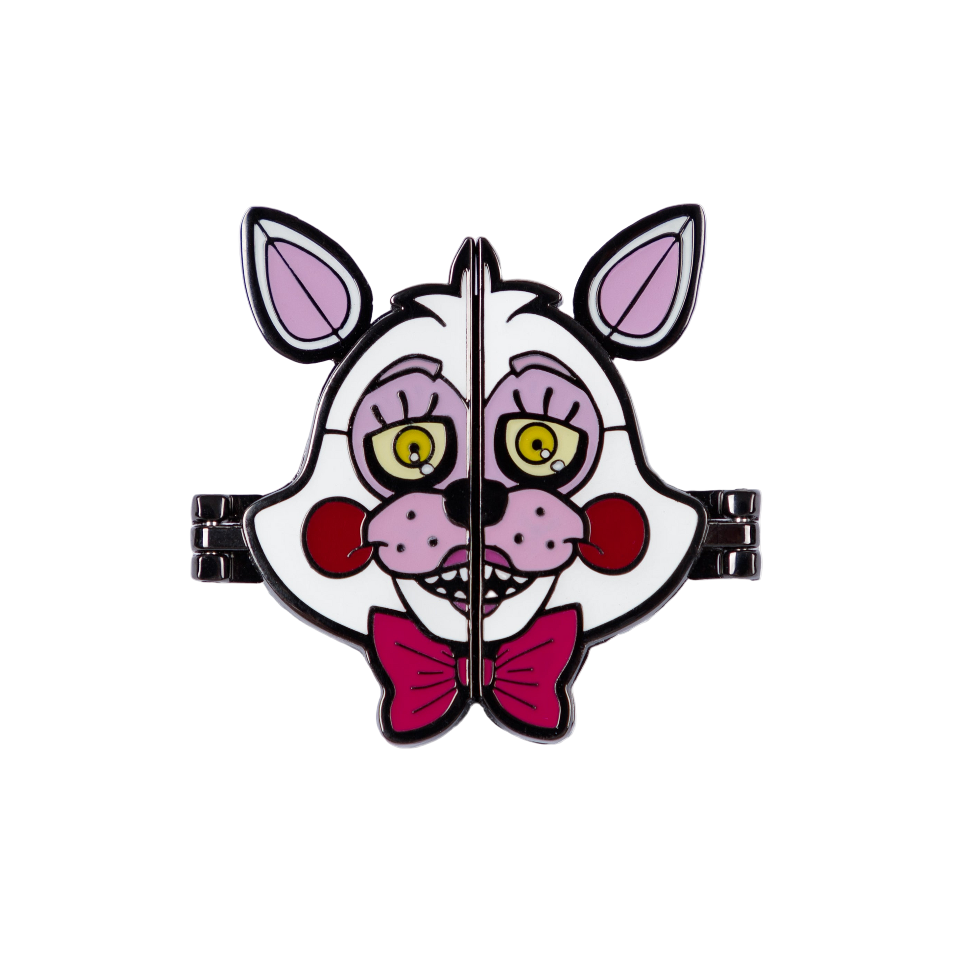 Official Hex x FNaF Funtime Foxy Articulated Enamel Pin- open to reveal her glow-in-the-dark eyes & bow-tie
